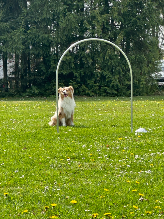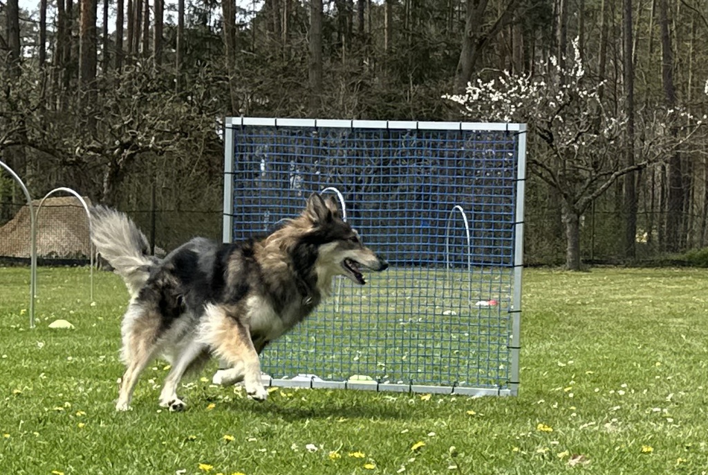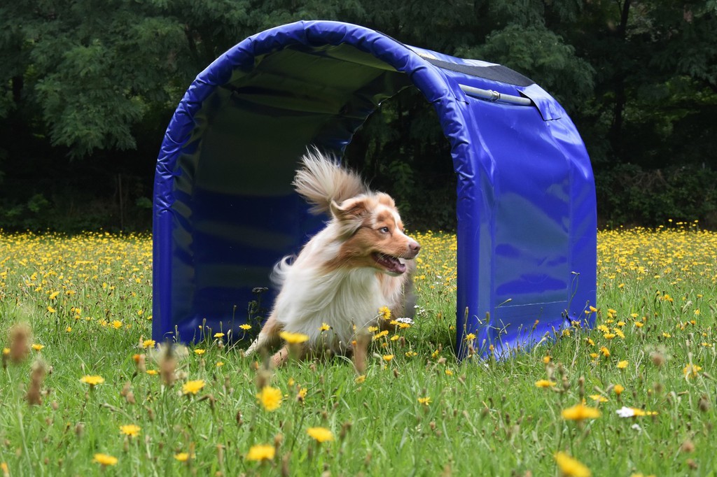 Hoopers ist eine relativ junge Hundesportart. Anders als im Agility muss der Hund in einem Hoopers Parcours nicht springen.